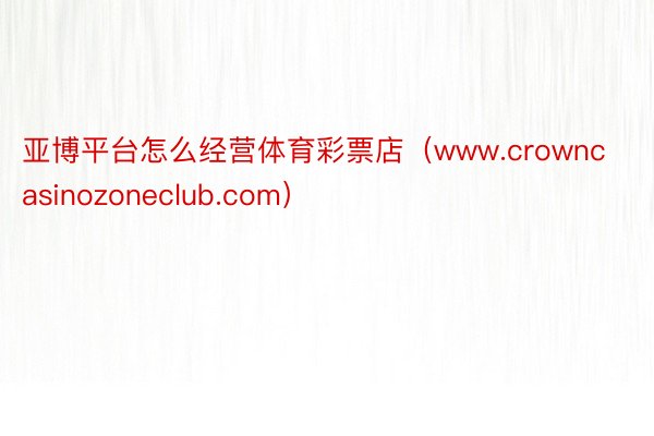 亚博平台怎么经营体育彩票店(www.crowncasinozoneclub.com)