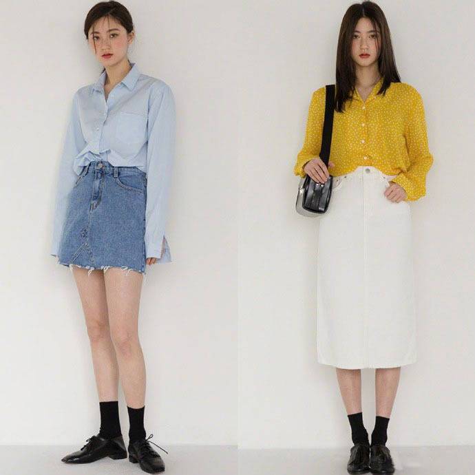 尝试的形式尽量多继承小众版型衬衫,这么碎裂易撞衫,像底下这一件白衬衫和黄色的半身裙组合搭配,就缩小穿出了日系风,从简洋气。