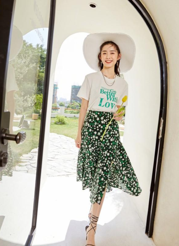 皇冠网址你还不错像底下这位达东说念主通常,继承一件带有字母印花T恤上衣搭配上碎花半身裙,这么更高造型就不会显得那么单调,愈加有颜面一些,你以为呢~