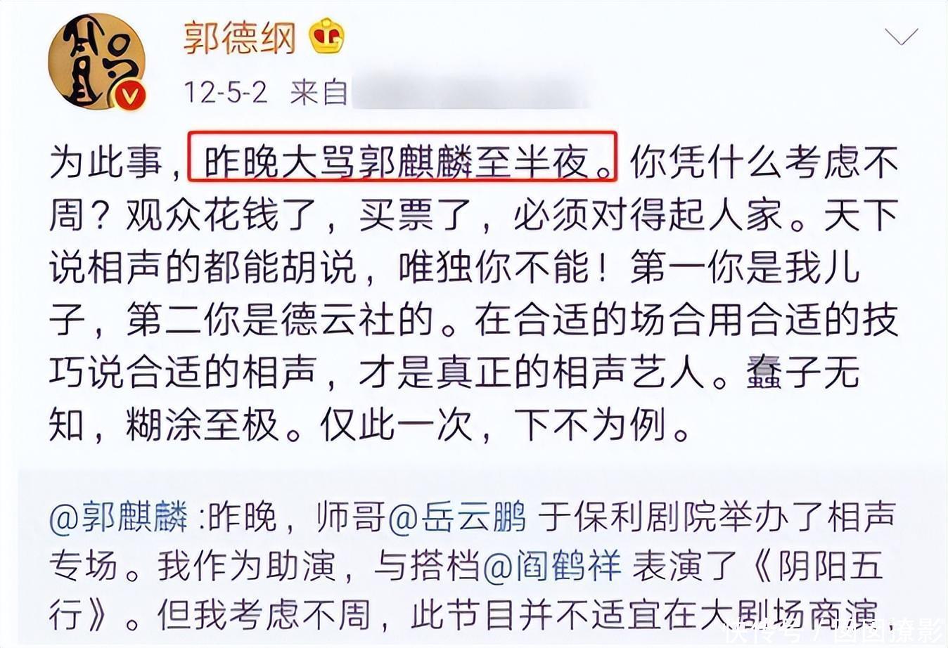 郭德纲动情地出了这句话: