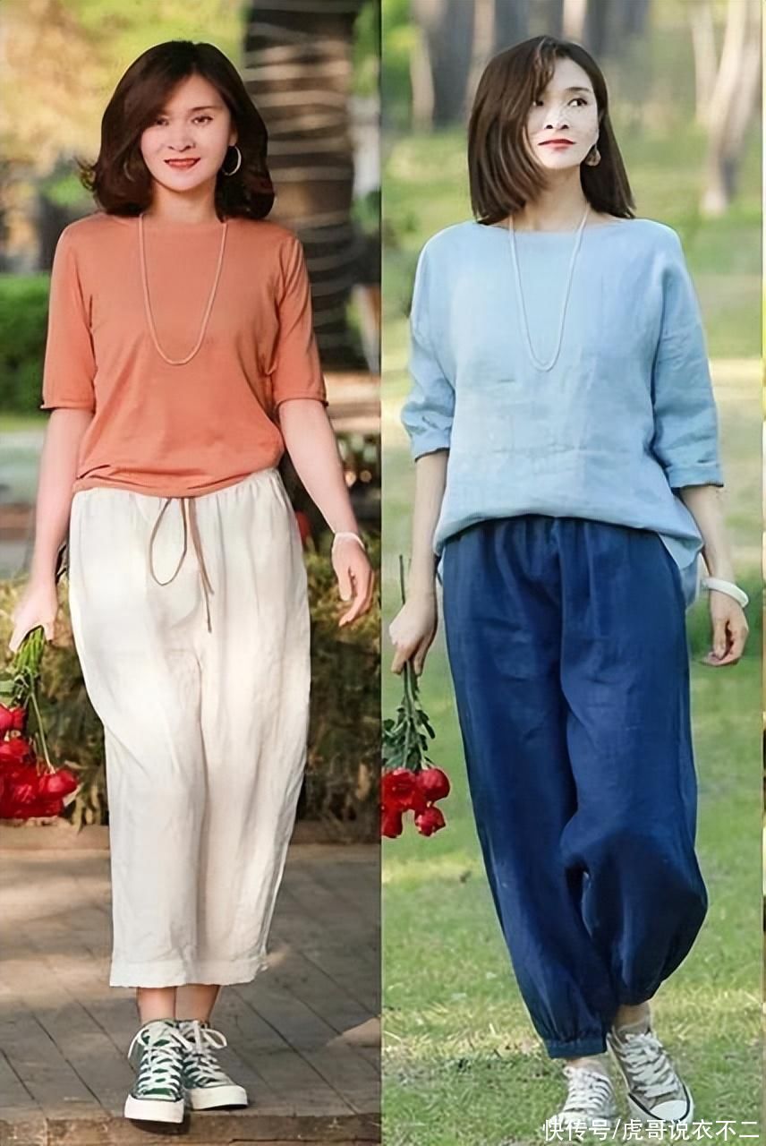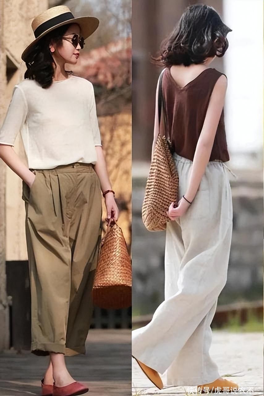 第二种是亚麻面料的裤装,亚麻的特质是透气性绝顶强,而况在视觉上就会显得质感绝顶好,慵懒随心的格调也很妥贴老练女性,然而亚麻的污点在于延展性欠安,莫得什么弹性。
